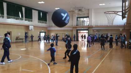 その後、講堂と運動場で行われる体力テスト(握力・上体起こし・長座体前屈・反復横跳び・20mシャトルラン)やニュースポーツ体験(ディスゲッター・バッゴー・ラダーゲッター・グラップボール・エアーボール・バンブーダンス・パラバウーン)をそれぞれに楽しみました。