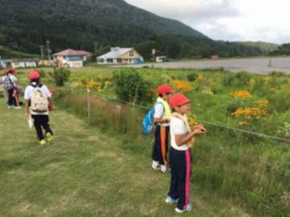 この後、宿舎に戻り、夕食までの時間に入浴と、郵便局からいただいた暑中見舞いはがきに、この日1日の思い出を綴りました。児童の帰宅までに届くと思いますのでお楽しみに。