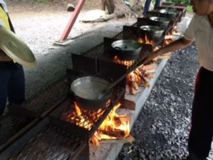 魚つかみの後、次は昼食のカレー作りを始めました。