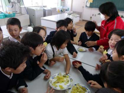 包丁が慣れない子、上手に猫の手で切っている子さまざまで