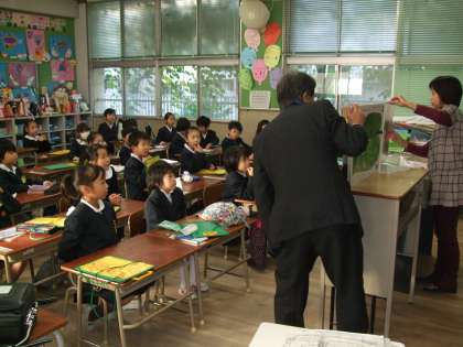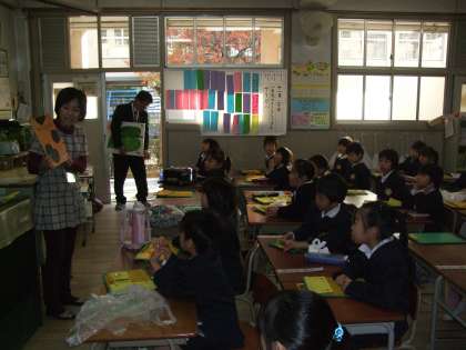 今日は、1年生の教室で絵本の読み聞かせをしていただきました。