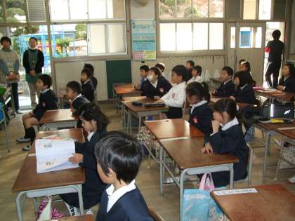 2組をのぞきました。この学級の初めての経験で少し緊張した面持ちです。