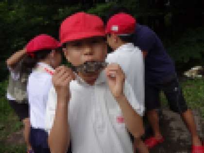 最後には、自分でつかまえたニジマスを焼いて食べました。「とてもおいしい。」と言って頭からしっぽまで食べきっている人がたくさんいました。