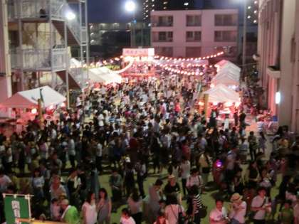 日が暮れ、さらに盛り上がりに拍車がかかる8時頃に、関目まつり代表者・関係者の方の紹介がありました。