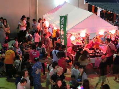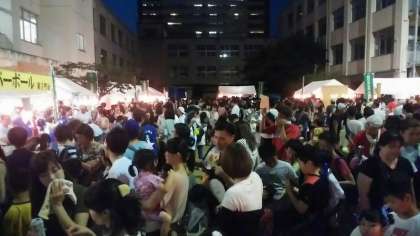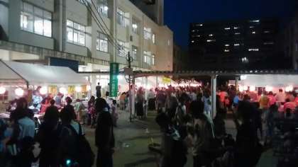 夕方に大雨が降ったにも関わらず、参加者が途絶えることがなく、盆踊りを楽しんだり、屋台の味を堪能したりしていました!