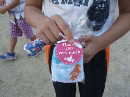 皆勤賞の人は景品として、ハンドタオルを貰っていました。