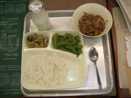 きょうの献立は、マーボーなす・チンゲンサイともやしの甘酢和え・