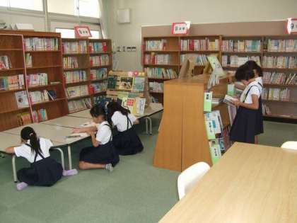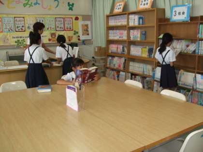 子どもたちは、休み時間に図書の貸し出しや返却をしたり、読みたい本を