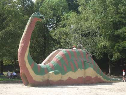 お城の広場で遊んだ後は場所を移動して、待ちに待った恐竜広場に行きました。