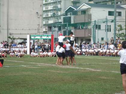 運動会の白熱する競技のひとつ、騎馬戦です。様々な戦略をくししたり、攻める気持ちを前面におしだしていたりといろいろな騎馬がありました。