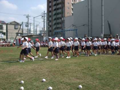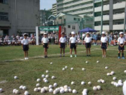 1年生の「かごいっぱいになれ」です。みんな楽しみの玉入れでした。