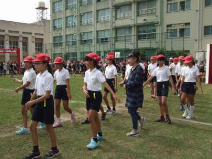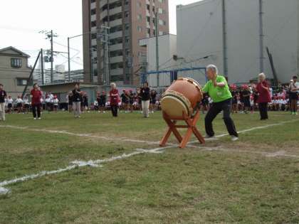 代々関目小学校の子どもたちに受け継がれている、伝統あるものの一つです。テンポの良い太鼓の音に合わせて、子どもたちと地域のたくさんの方々で心を一つに踊ることができました。