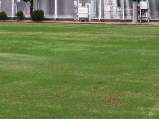 10月5日にオーバーシード作業が行われ、現在運動場は養生期間です。