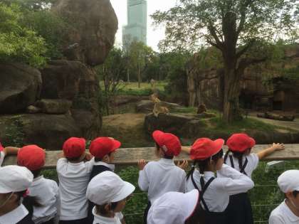 フクロテナガザルやマンドリルの鳴き声が園内に響いていました。とても印象に残ったようで、鳴きまねをする子どももいました。ライオンやトラも迫力満点でした。