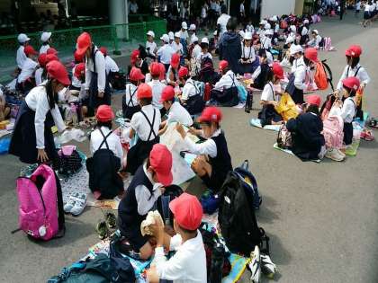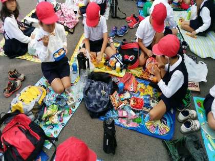 午前中、たくさんの動物を見て回りました。お腹がすいてきた頃に、お楽しみのお弁当タイムが始まりました。保護者の方の愛情と友だちと食べる楽しさで、いつも以上に美味しく感じたようです。