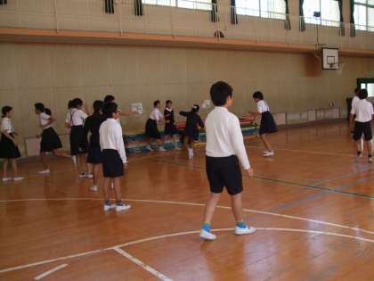 運動場が使えないため、15分休みと昼休みに講堂を開放して