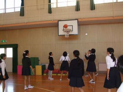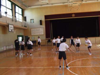 きょうは、6年生がグループに分かれたボール遊びを楽しんで