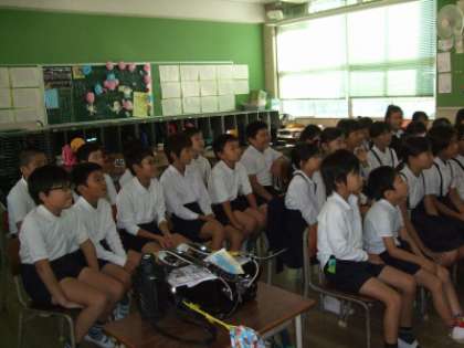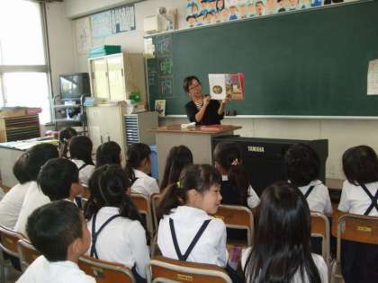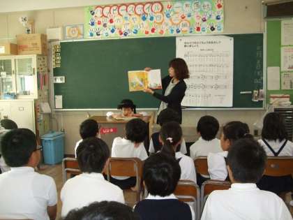 今朝は、図書館ボランティア「おはなしビスケット」のみなさんによる