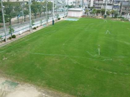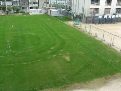 10月初旬にオーバーシード工事を行った東運動場の芝生が、すくすくと育ち