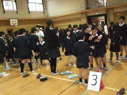 前半は、たてわり班の「ふ・れ・あ・い」のチームごとです。