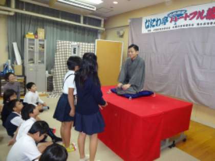 落語についてやおもしろい小話を聞いたり、でばやしの音楽を生で演奏していただいたりして、子ども達の笑顔が絶えませんでした。