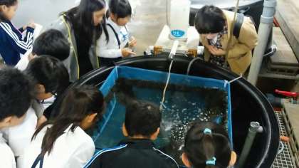 社会科で学習している「水産業とわたしたちのくらし」の社会見学のために、兵庫県の神戸市立栽培漁業センターへとやってきました。肌寒い天候も予想されましたが、日差しが暖かく気持ちよい現地での活動が始まりました。