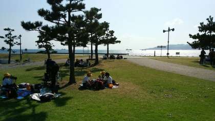 施設を出た後は実際に浜辺に沿って歩き、釣りをしている様子や船など漁業の様子を見学しました。たくさん歩き、学ぶことに集中したのでお腹がペコペコになったところでお弁当タイムです。