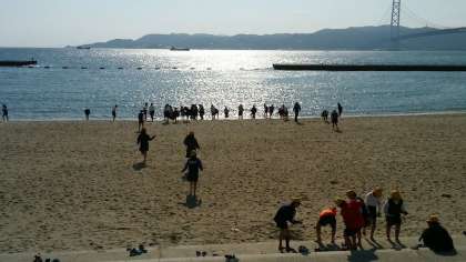 お弁当で元気になった後は記念撮影をし、帰校まで時間が少し余ったので、波の音を聞きながら砂浜で遊びました。少し濡れてしまった児童もいましたが、無事帰校することができました。