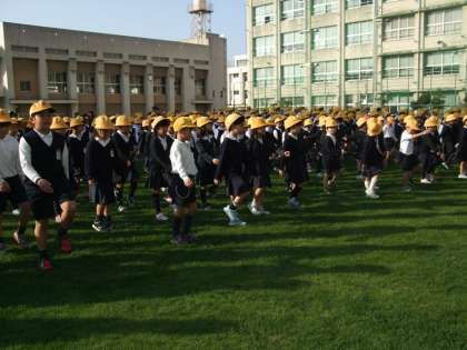 子ども達は、芝生の感触を確かめながらしっかり足踏みをして