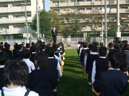 久しぶりに運動場で児童朝会がありました。