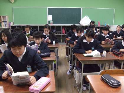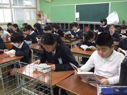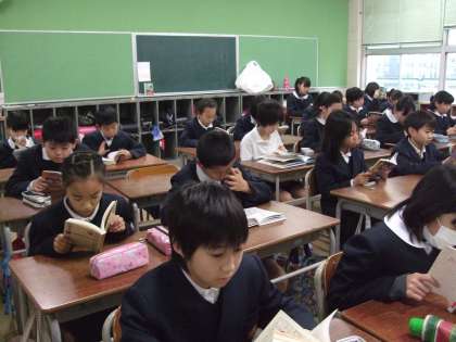 教室に入ると「し〜ん」としていて、みんな本を一生懸命読んでいました。
