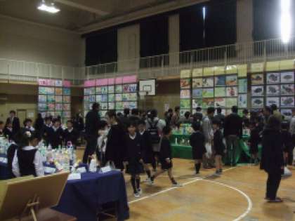 1時間目は中学年の鑑賞の時間です。保護者の方と回ったり、友だちと回ったりして、それぞれの作品の良さを感じています。