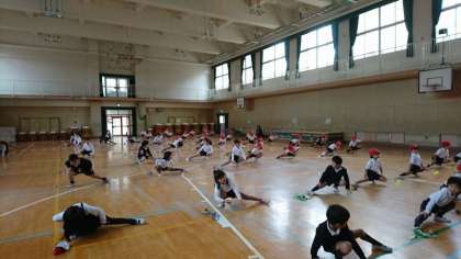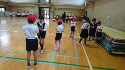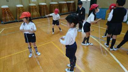 体育館を使い、なわとびとコマ回しをして交流をしました。1年生と2年生がグループになって、一緒に練習をしていました。2年生の子どもたちは「こうやって回したら回しやすいで」「なわとびはつま先でとんだ方がよくとべるよ」など、1年生にアドバイスをしてあげていました。さすが2年生!という姿を見せてくれました。