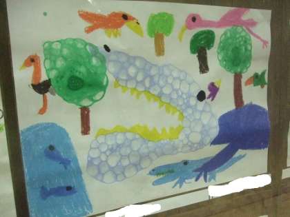 しゃぼん玉に絵の具を混ぜ、それを画用紙に吹きかけることで、幻想的な絵を描くことができました。シャボン玉の作り出した模様から、絵を想像している姿は本当に生き生きとしていました。