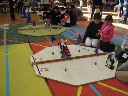 また、ロボット操縦体験コーナーでは、操縦を少し練習した後にゴールを目指して操縦する簡単なゲームで遊ぶこともできました。自分の思い通りに動かすことはなかなか難しいようでしたが、コツをつかんでうまく操縦する児童も多く見られました。