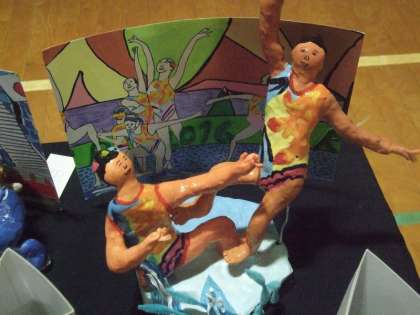 今年開催されたオリンピック。みんなの心に焼き付いた感動のシーンを紙粘土で表現しました。それぞれの体の動きや背景、選手の表情、競技の内容が伝わるように工夫しました。