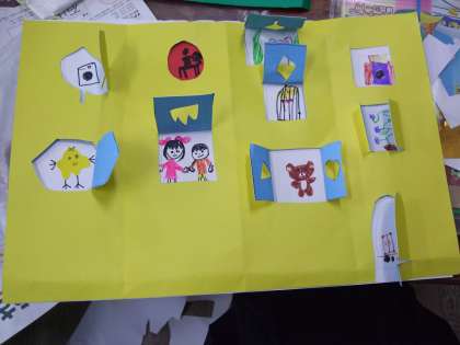 窓を開けるとキリン・パンダ・自動車など楽しい絵が見えます(^0^)