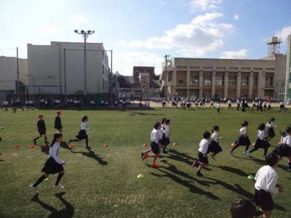 子どもたちは自分のペースをつかみ始めたようで、みんないきいきと走っています。