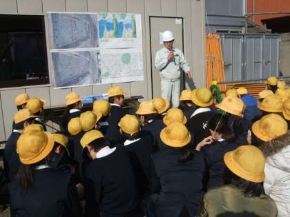 関目校区の工事現場で遺跡が見つかり、見学に出かけました。