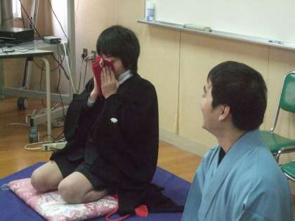 扇子や手ぬぐいを使った表現方法を教えていただきました。些細な技に見えますが、その表現方法を活用することで、物語がとてもイメージしやすくなります。