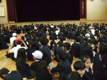 先生方が壇上に登場されると、「え〜」という歓声があがります。