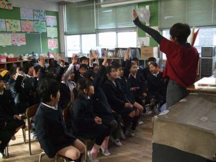 どの教室でも身を乗り出してお話に聞き入る姿を見かけます。