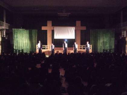 影を使った「影絵劇」というもので、子どもたちは普段見ることのない形式の劇にとても楽しそうな様子でした。