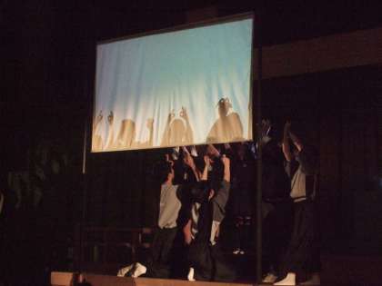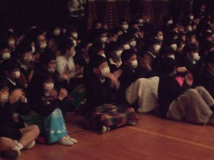 体験の後は、竹取物語から「かぐや姫」を見ました。影をうまく活用した劇に、子どもたちはいつの間にか引き込まれていました。