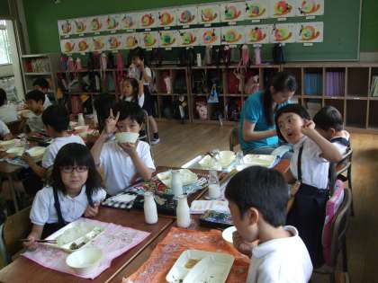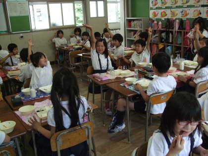 早く食べ終わった人は、静かに本を読んで「ごちそうさま」のあいさつを待っていました。