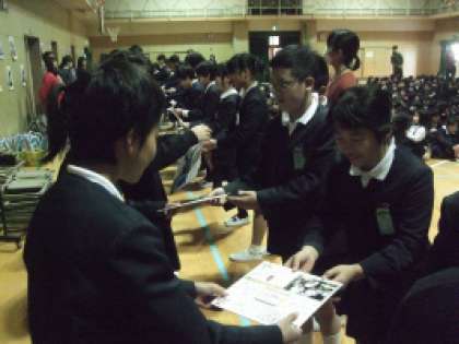 6年生を送る会の締めくくりとして、色紙のプレゼントとキャンドルロードでの祝福がありました。
