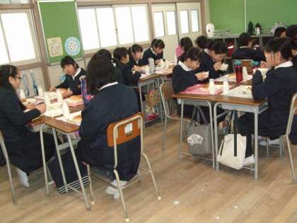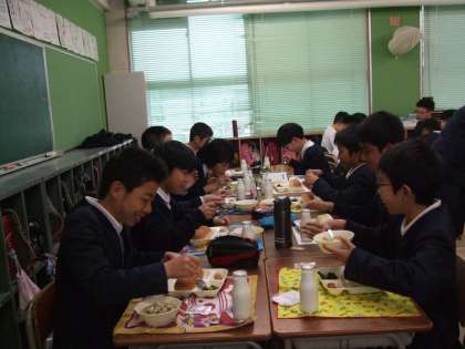 きょうの献立は、鶏肉と野菜のスープ煮・ほうれん草とコーンのソテー・