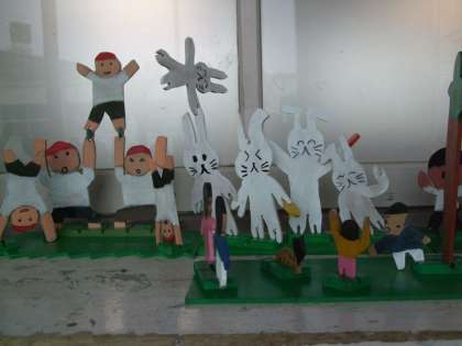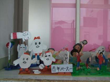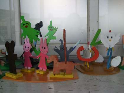 出来上がったパーツを組み合わせて楽しい作品が並んでいます。