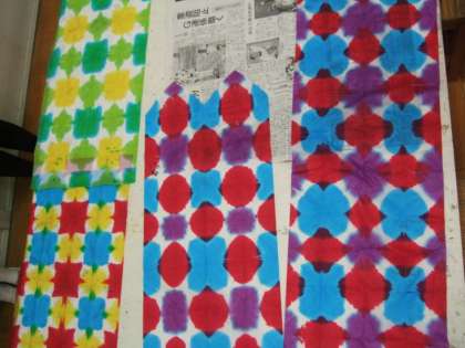 赤・青・きみどり・黄色など8色の染料の中から3色選び