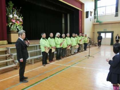 最後には、見守り隊の方々に感謝の言葉と色紙、お花を渡しました。